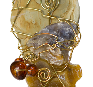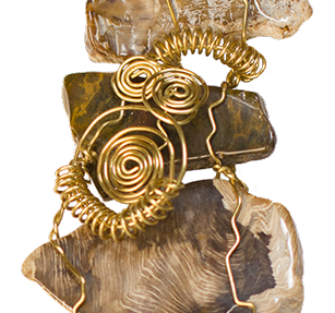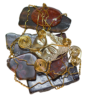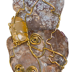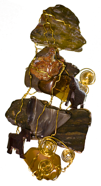 GOLD MOUNTAIN tumbled rock and brass wire, 2012