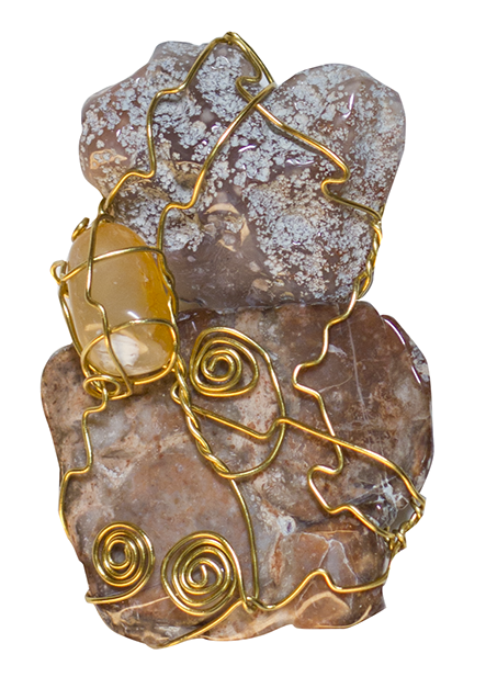THE GIFT, tumbled rock, brass wire, 2012