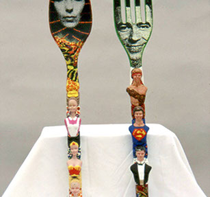 FOLKLORE AMERICANA, 2 pc. Mixed Media, 29" x 4 1/2" x 2 1/2" each, 1998