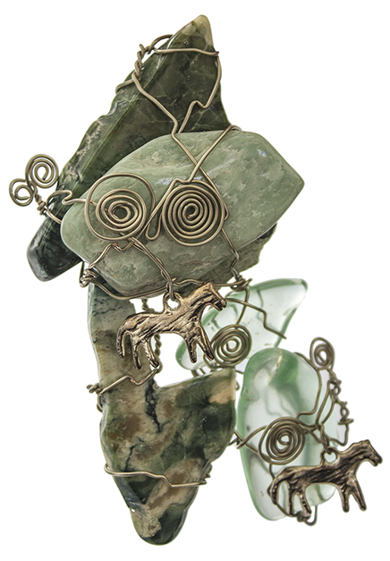 MARTHA’S HAND, tumbled rock and brass wire, 2016