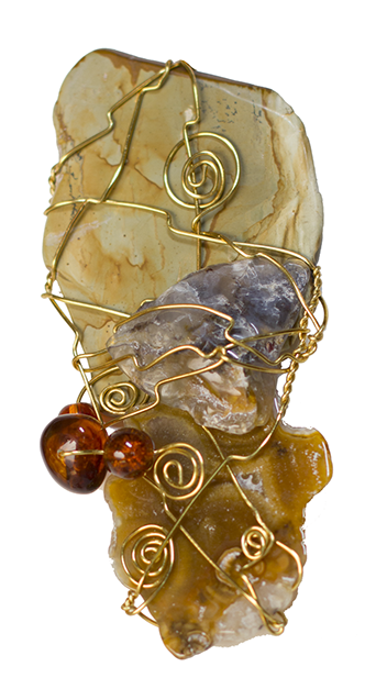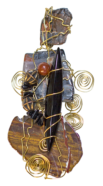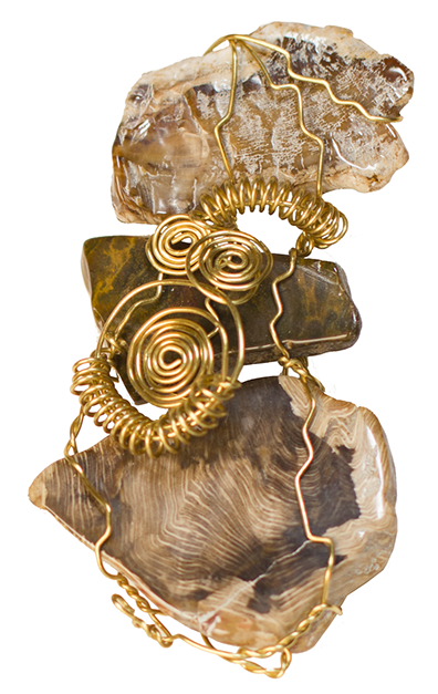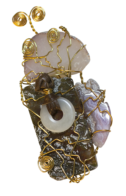 GOLD MOUNTAIN tumbled rock and brass wire, 2012