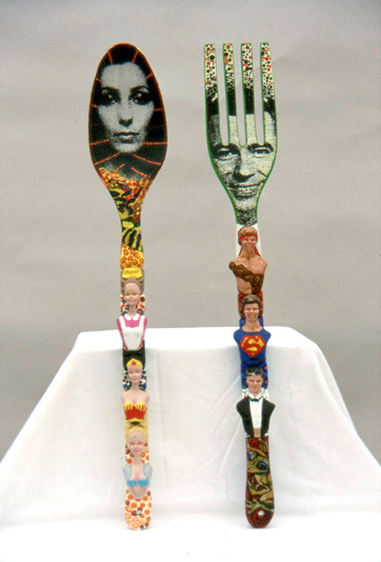 FOLKLORE AMERICANA, 2 pc. Mixed Media, 29" x 4 1/2" x 2 1/2" each, 1998