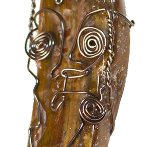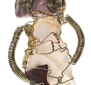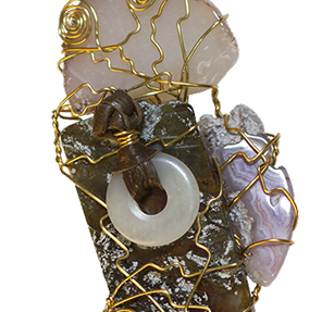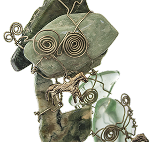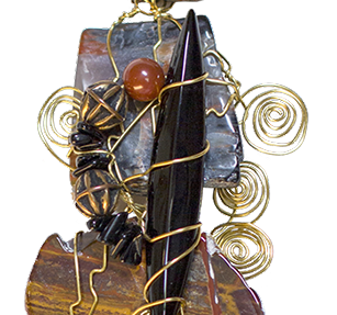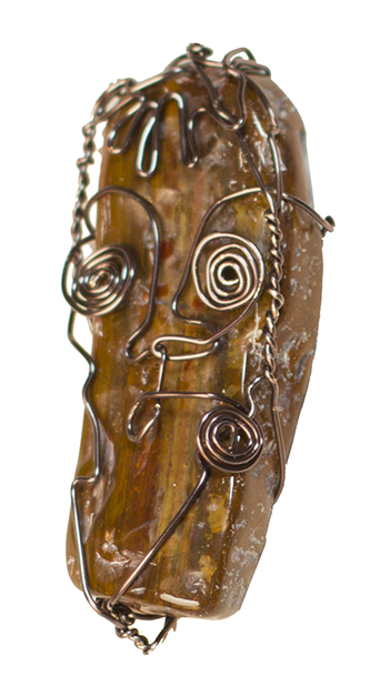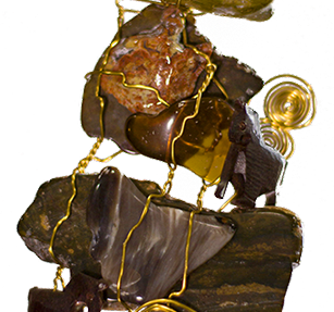 THE GIFT, tumbled rock, brass wire, 2012