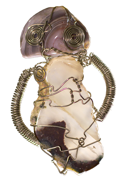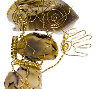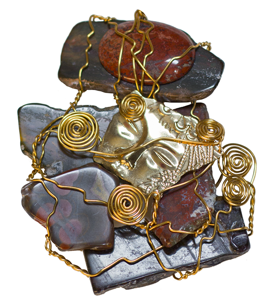 ROBO-MAMA, tumbled rock and brass wire, 2016