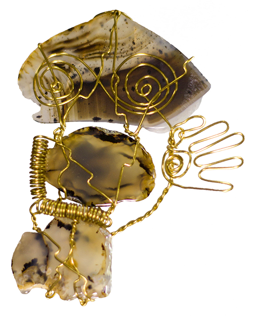 MARTHA’S HAND, tumbled rock and brass wire, 2016